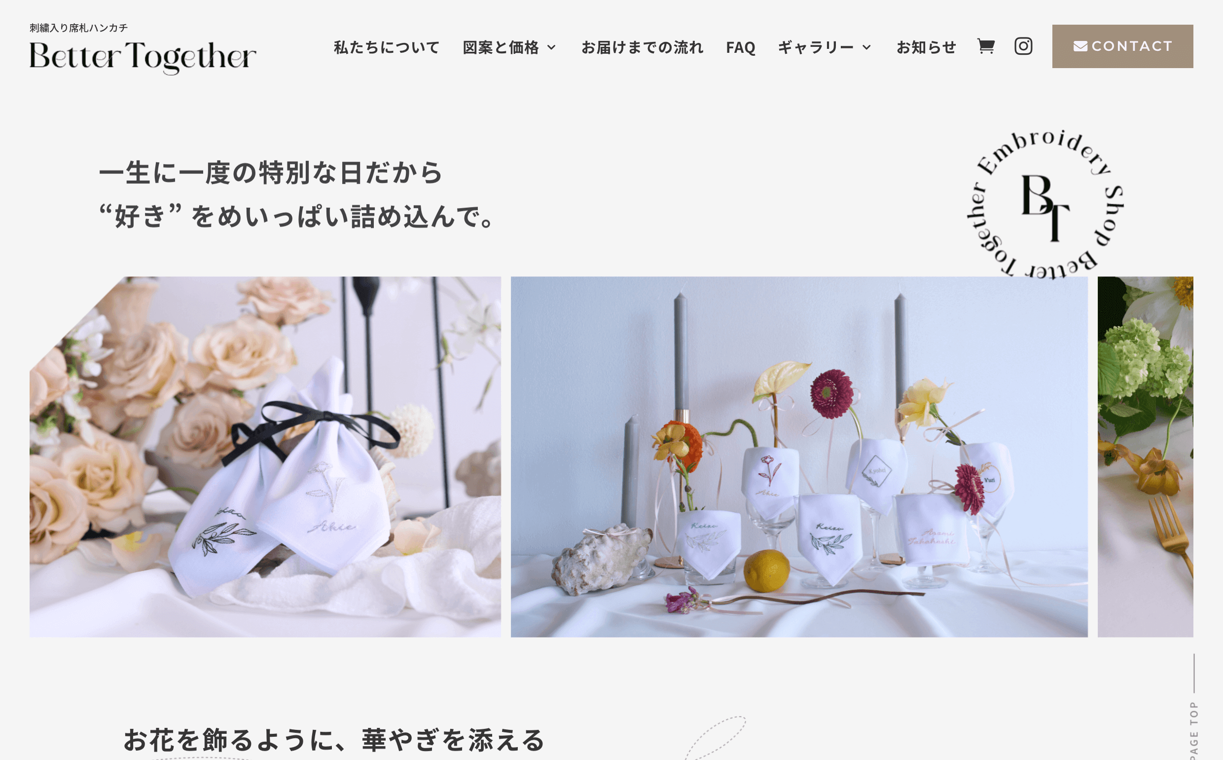 ブライダル用の「刺繍入り席札ハンカチ」や「ブライダルハンカチ」を全国で販売されている